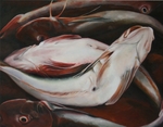 - Beeldverhaal vis De vis heeft zich ontwikkeld tot een belangrijk thema in mijn werk.Altijd onzichtbaar en onder water zolang hij leeft. Als hij zichtbaar wordt is zijn lot onherroepelijk; voedsel.Het begon in de keuken waar ik de vis klaarmaakte voor consumptie.De huid glinsterend levend, de ogen glanzend en mij aanstarend De vis voelend en zijn blik ziend zag ik hem steeds meer als dier